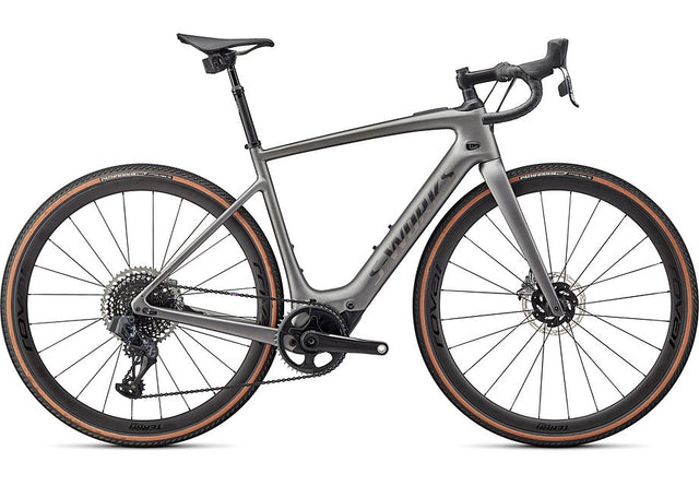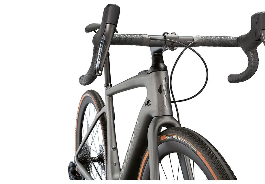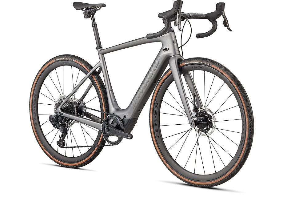 Like all of our S-Works bikes, the S-Works Turbo Creo SL EVO is our pinnacle build. The FACT 11r chassis and Future Shock 2.0 with a hydraulic damper is dressed with a 1x build that includes SRAM Red AXS eTap, a SRAM XX1 Eagle rear derailleur, and a 10-50t cassette for an incredible gear range. It rolls on Roval Terra CLX Disc carbon wheels with 38mm Pathfinder Pro 2Bliss Ready tires to keep you rolling worry-free and super fast, no matter the terrain. And filling out the build are Roval Terra carbon bars with 12 degrees of flare, a S-Works Future Stem, a SRAM Reverb AXS dropper seatpost, and a Body Geometry S-Works Power saddle.