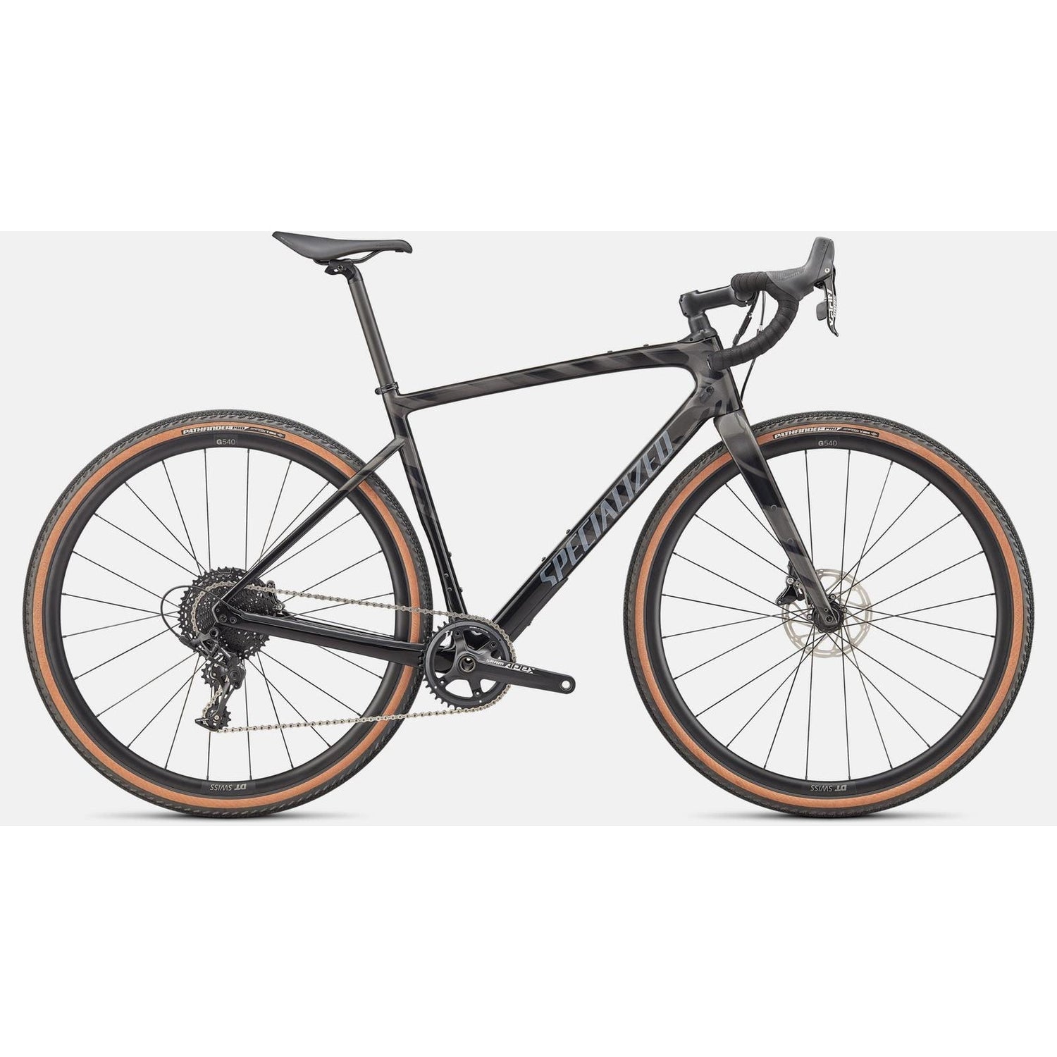 DT Swiss G540 rim, 24mm internal width, tubeless ready, 24h, Specialized full sealed bearing thru axle hub, centerlock disc, DT Swiss Champion 14G stainless steel spokes, DT Swiss brass nipples |
