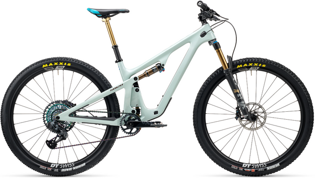 TURQ Series carbon fiber frame, Switch Infinity V2 suspension technology, Threaded BB, internally tunneled cable routing, 148mm x 12mm BOOST dropouts, sealed enduro max pivot bearings, Universal derailleur hanger (UDH), and axle. |