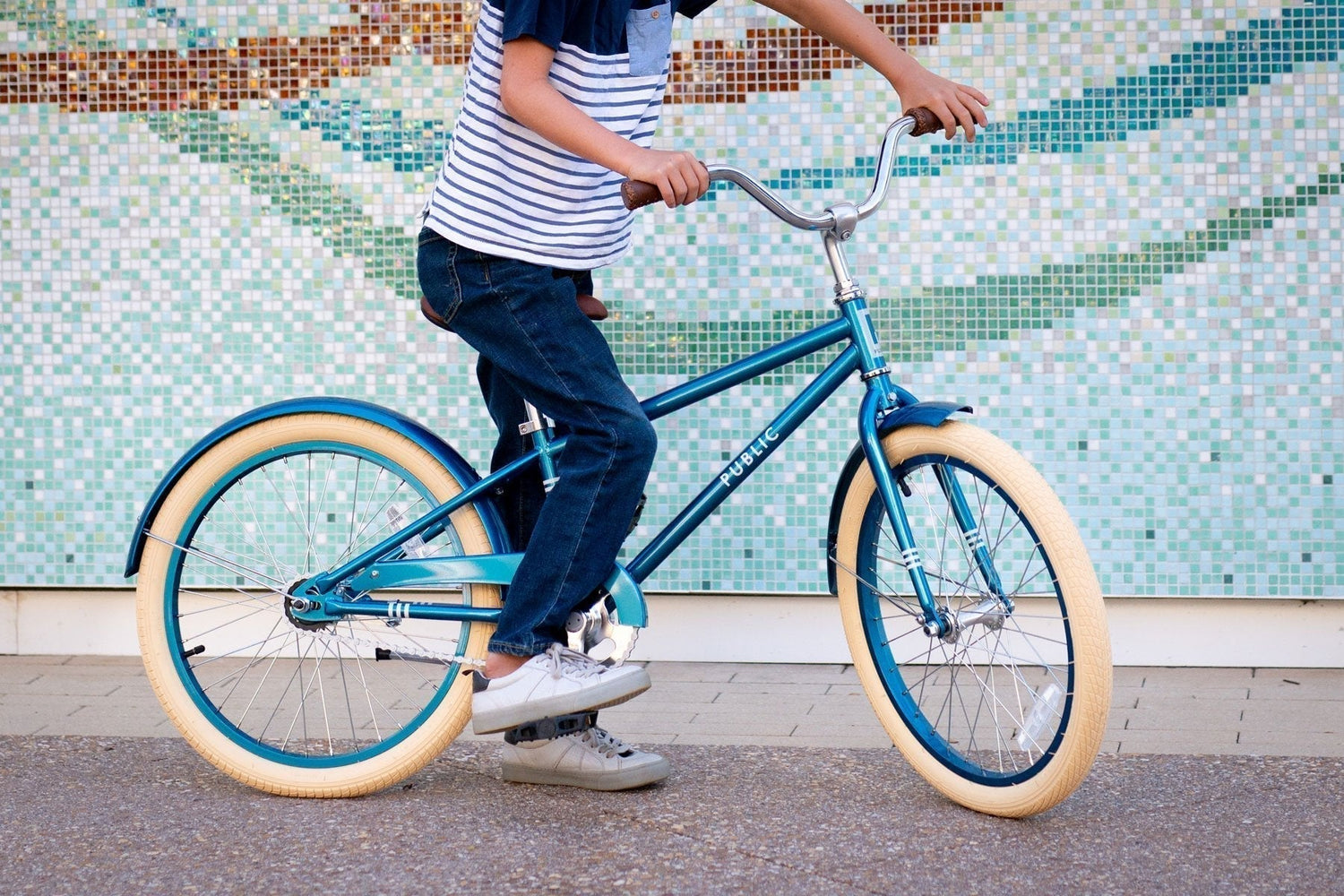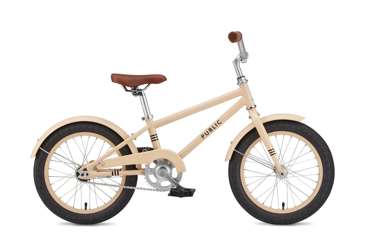 Parents love the simple, stylish, durable design, with no cables to get tangled, and real quality bike parts that are safer and longer lasting that anything you'll find in the toy store. We designed these bikes with our own kids in mind, with dependable construction to last through lots of rough and tumble and hand-me-downs. Naturally we included all the great features of grown-up PUBLIC bikes, like the matching fenders and chainguard, and comfortable brown vinyl seat and grips. The single-speed rust-resistant chain and quality coaster brake are the simplest to learn, don't need much maintenance, and make stopping just as fun as going.