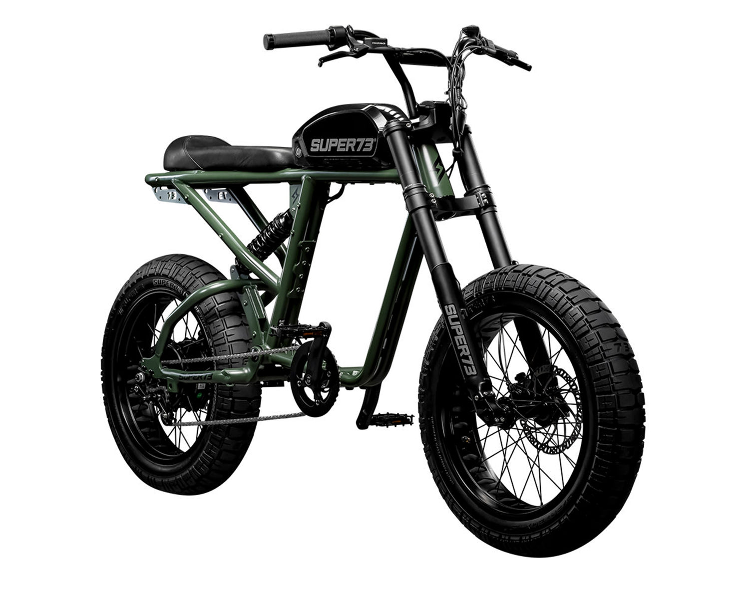 BDGR Tires - All R-Series motorbikes include the all-new BDGR tire. At 5" wide, the all-new BDGR tire is the widest and most aggressive 20" all-terrain fat tire available. The BDGR is the first tire that blends motorcycle and bicycle tire construction methods to meet the needs of this revolutionary vehicle. The proprietary SUPER73 tread pattern has been designed to improve traction, reduce road noise, and increase stability for both on-road and light-duty off-road riding.